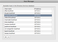 Host Manager is an application that let you manage your hosts using the Mac OS X Directory Services database.