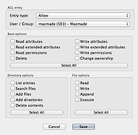 In its registered version, PropEdit also has a built-in support for Mac OS X ACLs (Access Control Lists), allowing you to take a full control over your filesystem permissions.